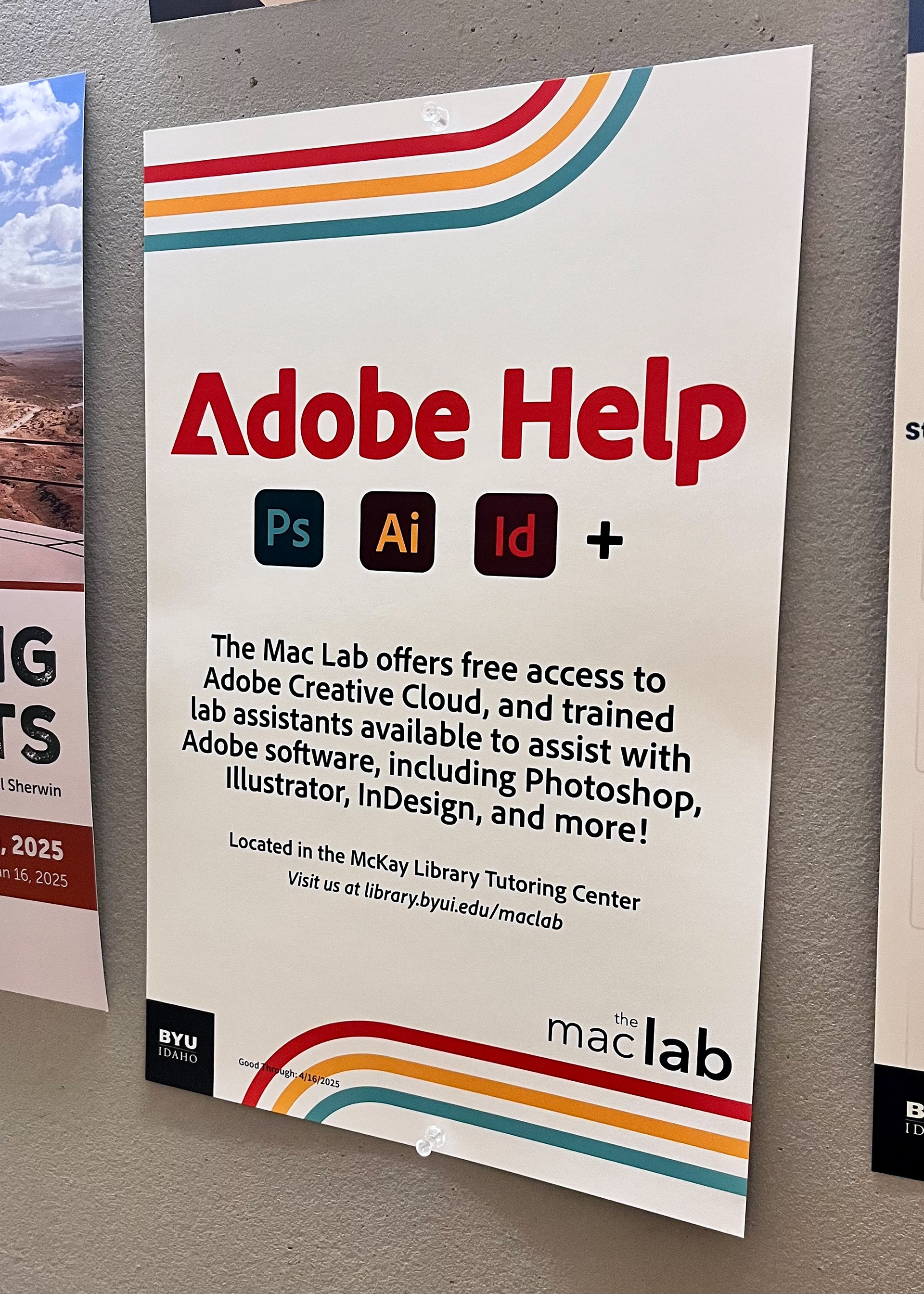 The Mac Lab at Brigham Young University–Idaho is a creative help center where students can get support with Adobe software, design projects, and more. As the Lead Designer, I guided our student design team while also creating promotional materials for the Mac Lab and the David O. McKay Library, advertising events and services, and collaborating on projects to showcase the lab’s resources.